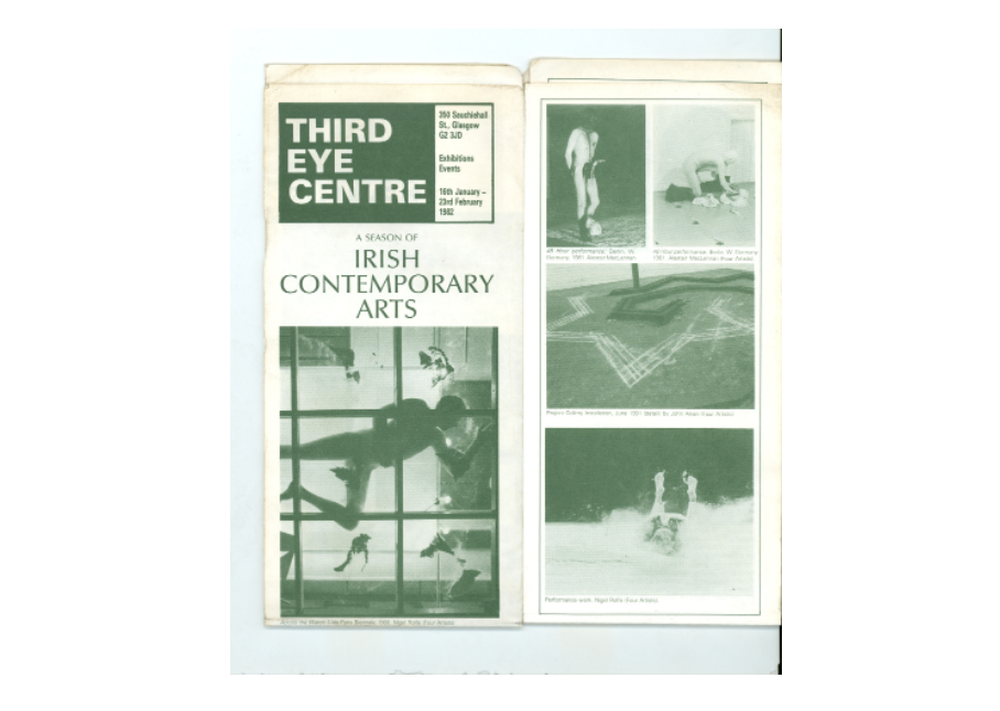 This week’s selection from NIVAL, curated by Jennifer Fitzgibbon, presents some key moments from the early years of performance art in Ireland, suggesting that these years of ‘setting the scene’ were marked by a culture of experimentation, collaboration and exchange. Material presented from NIVAL’s artist files and special collections will include Nigel Rolfe, Alastair MacLennan, Danny McCarthy and Brian Connolly, among others.